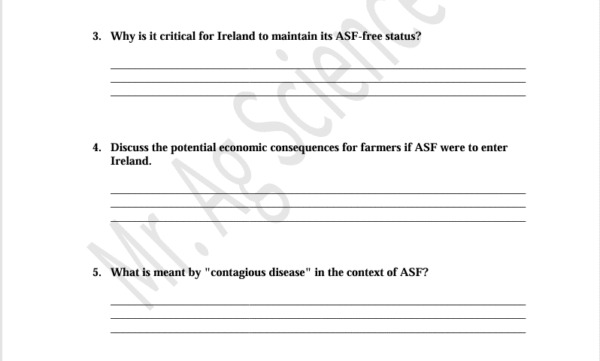 This worksheet introduces students to ASF, a contagious viral disease affecting pigs, and its impact on Irish pig farming.