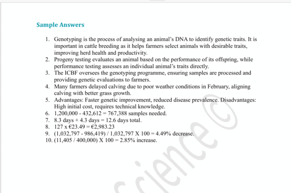 Comprehension topics; Embryo Transplantation, Enviropig, Euro Star Index, Genotyping and GM crops