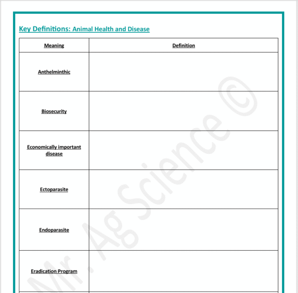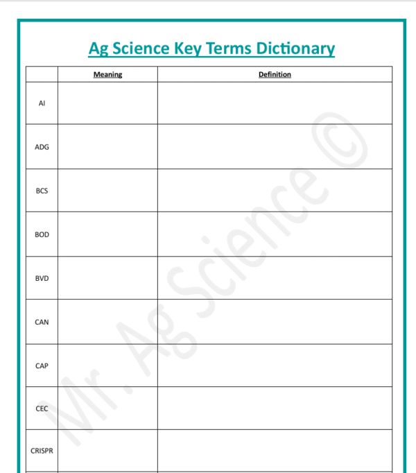 This resource is designed to help students master the language of Ag Science before diving into each topic.