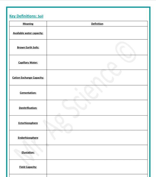 Resource is excellent. I have been using it to catch up on the definitions students haven’t done last year. I asked them how they find it today and they said it was brilliant to have all the soil in one place. I am trying to complete all of the soil experiments at the moment and do their projects and do new theory not done , finding it a lot. Thank you so much for the resources. They are really helping me this year of all years .