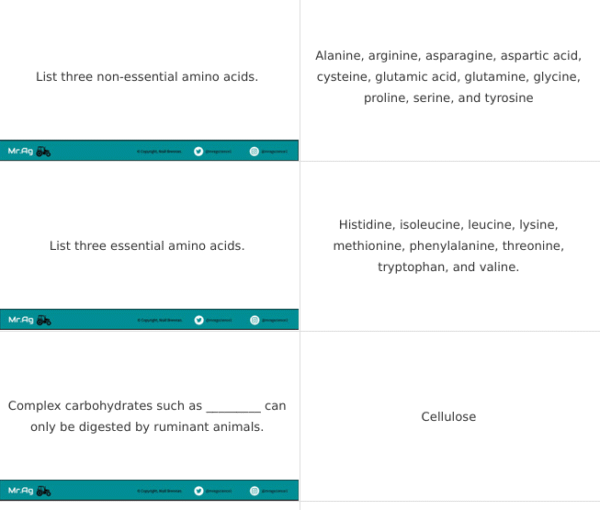 There are 59 flashcards in this bundle from the chapter on Animal Nutrition.