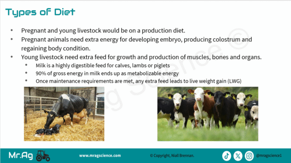 This PowerPoint presentation provides clear, structured notes on Animal Nutrition, covering nutrient types, energy types, protein requirements, rations for dairy, beef, sheep and pigs, mineral deficiencies, and ingredient functions.