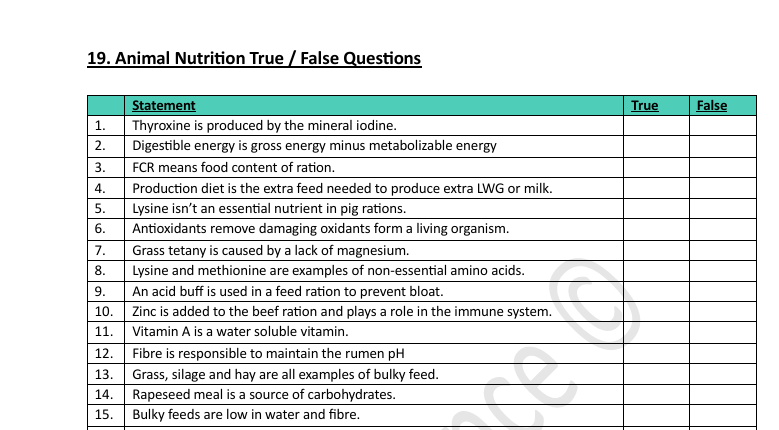 A checklist of what students should know from the Aniumal Nutrition chapter of the book.