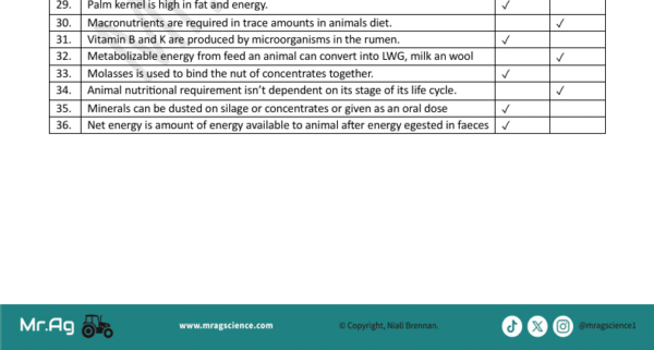 36 statements from the chapter on Animal Nutrition that are either true or false