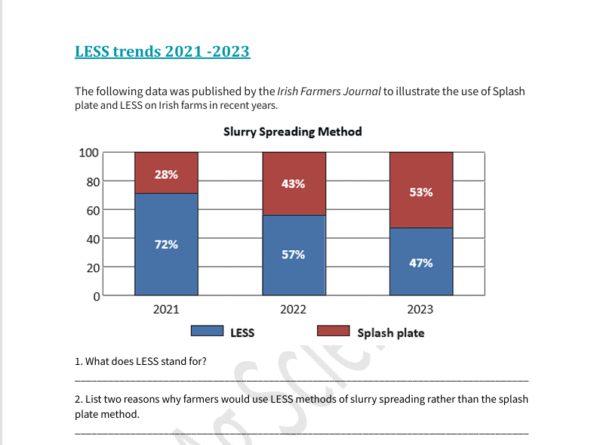 Using real Irish Farmers Journal data, students analyse trends, calculate nutrient efficiencies, and evaluate the environmental, financial, and regulatory benefits of LESS.