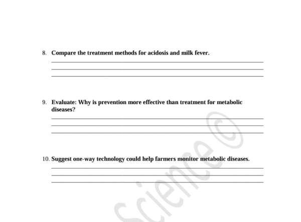 This comprehension piece covers key metabolic diseases in livestock, including bloat, acidosis, and milk fever, with causes, symptoms, treatment, and prevention explained clearly.