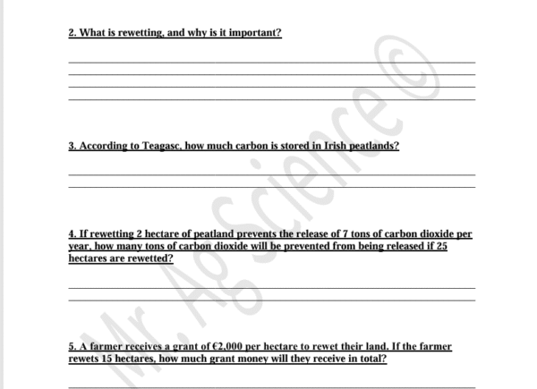 Ideal for Leaving Cert Agricultural Science students, this resource encourages critical thinking about climate change mitigation, sustainability, and practical solutions for farmers managing degraded peatlands.