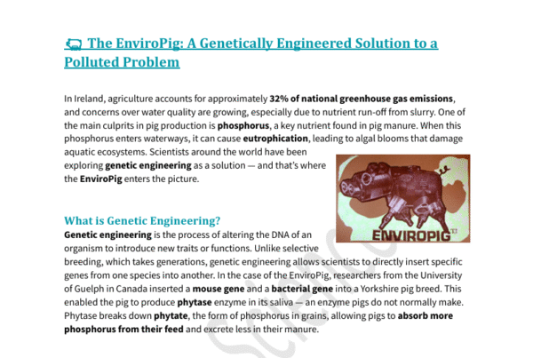 Comprehension on African Swine Flu, Pig Slurry and Enviropig