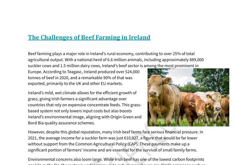 Perfect for Leaving Cert Agricultural Science classes, this resource encourages critical thinking about sustainable beef production and practical farm management.